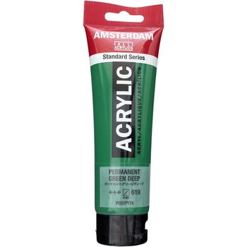Τιμή λίτρου: 25.833 €Blank page Ακρυλικό χρώμα Permanent Green Deep 619 της σειράς Amsterdam All Acrylics Standard Series σε συσκευασία των 120ml. Τα χρώματα Amsterdam Standard Series είναι εξαιρετικής ποιότητας ακρυλικά χρώματα με την εγγύηση της Ολλανδικής Royal Talens. Φτιαγμένα με υψηλής ποιότητας, ανθεκτικές στο φως χρωστικές, εχουν βαθμολογία αντοχής στο φως +++ (100+ χρόνια υπό συνθήκες μουσείου). Η σειρά Standard σας προσφέρει μία ευρεία γκάμα από εξαιρετικά ζωντανά αδιαφανή ακρυλικά χρώματα, εύκολα στη χρήση, τα οποία προσφέρουν ομαλή εφαρμογή. Χρησιμοποιήστε το χρώμα απευθείας από το σωλήνα ή αραιωμένο με λίγο νερό ή ένα από τα διαλυτικά για ακρυλικά χρώματα. Είναι κατασκευασμένα με 100% συνδετικό ακρυλικής ρητίνης, με αποτέλεσμα μια εξαιρετικά ανθεκτική και εύκαμπτη μεμβράνη βαφής με ομοιόμορφο βαθμό γυαλάδας. Άοσμη φόρμουλα με βάση το νερό η οποία γίνεται αδιάβροχη και με μέγάλη αντοχή όταν στεγνώσει. Προσκολλάται σχεδόν σε οποιαδήποτε ελαφρώς πορώδη επιφάνεια, συμπεριλαμβανομένου καμβά, χαρτιού, χαρτονιού, ξύλου, πέτρας και τσιμέντου.