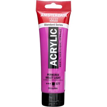 Τιμή λίτρου: 25.833 €Blank page Ακρυλικό χρώμα Permanent Red Violet Light 577 της σειράς Amsterdam All Acrylics Standard Series σε συσκευασία των 120ml. Τα χρώματα Amsterdam Standard Series είναι εξαιρετικής ποιότητας ακρυλικά χρώματα με την εγγύηση της Ολλανδικής Royal Talens. Φτιαγμένα με υψηλής ποιότητας, ανθεκτικές στο φως χρωστικές, εχουν βαθμολογία αντοχής στο φως +++ (100+ χρόνια υπό συνθήκες μουσείου). Η σειρά Standard σας προσφέρει μία ευρεία γκάμα από εξαιρετικά ζωντανά αδιαφανή ακρυλικά χρώματα, εύκολα στη χρήση, τα οποία προσφέρουν ομαλή εφαρμογή. Χρησιμοποιήστε το χρώμα απευθείας από το σωλήνα ή αραιωμένο με λίγο νερό ή ένα από τα διαλυτικά για ακρυλικά χρώματα. Είναι κατασκευασμένα με 100% συνδετικό ακρυλικής ρητίνης, με αποτέλεσμα μια εξαιρετικά ανθεκτική και εύκαμπτη μεμβράνη βαφής με ομοιόμορφο βαθμό γυαλάδας. Άοσμη φόρμουλα με βάση το νερό η οποία γίνεται αδιάβροχη και με μέγάλη αντοχή όταν στεγνώσει. Προσκολλάται σχεδόν σε οποιαδήποτε ελαφρώς πορώδη επιφάνεια, συμπεριλαμβανομένου καμβά, χαρτιού, χαρτονιού, ξύλου, πέτρας και τσιμέντου.