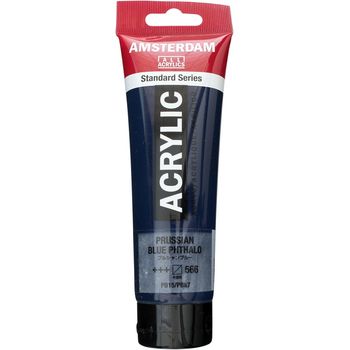 Τιμή λίτρου: 29.917 €Blank page Ακρυλικό χρώμα Prussian Blue Phthalo 566 της σειράς Amsterdam All Acrylics Standard Series σε συσκευασία των 120ml. Τα χρώματα Amsterdam Standard Series είναι εξαιρετικής ποιότητας ακρυλικά χρώματα με την εγγύηση της Ολλανδικής Royal Talens. Φτιαγμένα με υψηλής ποιότητας, ανθεκτικές στο φως χρωστικές, εχουν βαθμολογία αντοχής στο φως +++ (100+ χρόνια υπό συνθήκες μουσείου). Η σειρά Standard σας προσφέρει μία ευρεία γκάμα από εξαιρετικά ζωντανά αδιαφανή ακρυλικά χρώματα, εύκολα στη χρήση, τα οποία προσφέρουν ομαλή εφαρμογή. Χρησιμοποιήστε το χρώμα απευθείας από το σωλήνα ή αραιωμένο με λίγο νερό ή ένα από τα διαλυτικά για ακρυλικά χρώματα. Είναι κατασκευασμένα με 100% συνδετικό ακρυλικής ρητίνης, με αποτέλεσμα μια εξαιρετικά ανθεκτική και εύκαμπτη μεμβράνη βαφής με ομοιόμορφο βαθμό γυαλάδας. Άοσμη φόρμουλα με βάση το νερό η οποία γίνεται αδιάβροχη και με μέγάλη αντοχή όταν στεγνώσει. Προσκολλάται σχεδόν σε οποιαδήποτε ελαφρώς πορώδη επιφάνεια, συμπεριλαμβανομένου καμβά, χαρτιού, χαρτονιού, ξύλου, πέτρας και τσιμέντου.