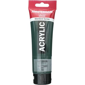 Τιμή λίτρου: 25.833 €Blank page Ακρυλικό χρώμα Sap Green 623 της σειράς Amsterdam All Acrylics Standard Series σε συσκευασία των 120ml. Τα χρώματα Amsterdam Standard Series είναι εξαιρετικής ποιότητας ακρυλικά χρώματα με την εγγύηση της Ολλανδικής Royal Talens. Φτιαγμένα με υψηλής ποιότητας, ανθεκτικές στο φως χρωστικές, εχουν βαθμολογία αντοχής στο φως +++ (100+ χρόνια υπό συνθήκες μουσείου). Η σειρά Standard σας προσφέρει μία ευρεία γκάμα από εξαιρετικά ζωντανά αδιαφανή ακρυλικά χρώματα, εύκολα στη χρήση, τα οποία προσφέρουν ομαλή εφαρμογή. Χρησιμοποιήστε το χρώμα απευθείας από το σωλήνα ή αραιωμένο με λίγο νερό ή ένα από τα διαλυτικά για ακρυλικά χρώματα. Είναι κατασκευασμένα με 100% συνδετικό ακρυλικής ρητίνης, με αποτέλεσμα μια εξαιρετικά ανθεκτική και εύκαμπτη μεμβράνη βαφής με ομοιόμορφο βαθμό γυαλάδας. Άοσμη φόρμουλα με βάση το νερό η οποία γίνεται αδιάβροχη και με μέγάλη αντοχή όταν στεγνώσει. Προσκολλάται σχεδόν σε οποιαδήποτε ελαφρώς πορώδη επιφάνεια, συμπεριλαμβανομένου καμβά, χαρτιού, χαρτονιού, ξύλου, πέτρας και τσιμέντου.