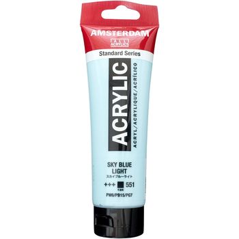 Τιμή λίτρου: 25.833 €Blank page Ακρυλικό χρώμα Sky Blue Light 551 της σειράς Amsterdam All Acrylics Standard Series σε συσκευασία των 120ml. Τα χρώματα Amsterdam Standard Series είναι εξαιρετικής ποιότητας ακρυλικά χρώματα με την εγγύηση της Ολλανδικής Royal Talens. Φτιαγμένα με υψηλής ποιότητας, ανθεκτικές στο φως χρωστικές, εχουν βαθμολογία αντοχής στο φως +++ (100+ χρόνια υπό συνθήκες μουσείου). Η σειρά Standard σας προσφέρει μία ευρεία γκάμα από εξαιρετικά ζωντανά αδιαφανή ακρυλικά χρώματα, εύκολα στη χρήση, τα οποία προσφέρουν ομαλή εφαρμογή. Χρησιμοποιήστε το χρώμα απευθείας από το σωλήνα ή αραιωμένο με λίγο νερό ή ένα από τα διαλυτικά για ακρυλικά χρώματα. Είναι κατασκευασμένα με 100% συνδετικό ακρυλικής ρητίνης, με αποτέλεσμα μια εξαιρετικά ανθεκτική και εύκαμπτη μεμβράνη βαφής με ομοιόμορφο βαθμό γυαλάδας. Άοσμη φόρμουλα με βάση το νερό η οποία γίνεται αδιάβροχη και με μέγάλη αντοχή όταν στεγνώσει. Προσκολλάται σχεδόν σε οποιαδήποτε ελαφρώς πορώδη επιφάνεια, συμπεριλαμβανομένου καμβά, χαρτιού, χαρτονιού, ξύλου, πέτρας και τσιμέντου.