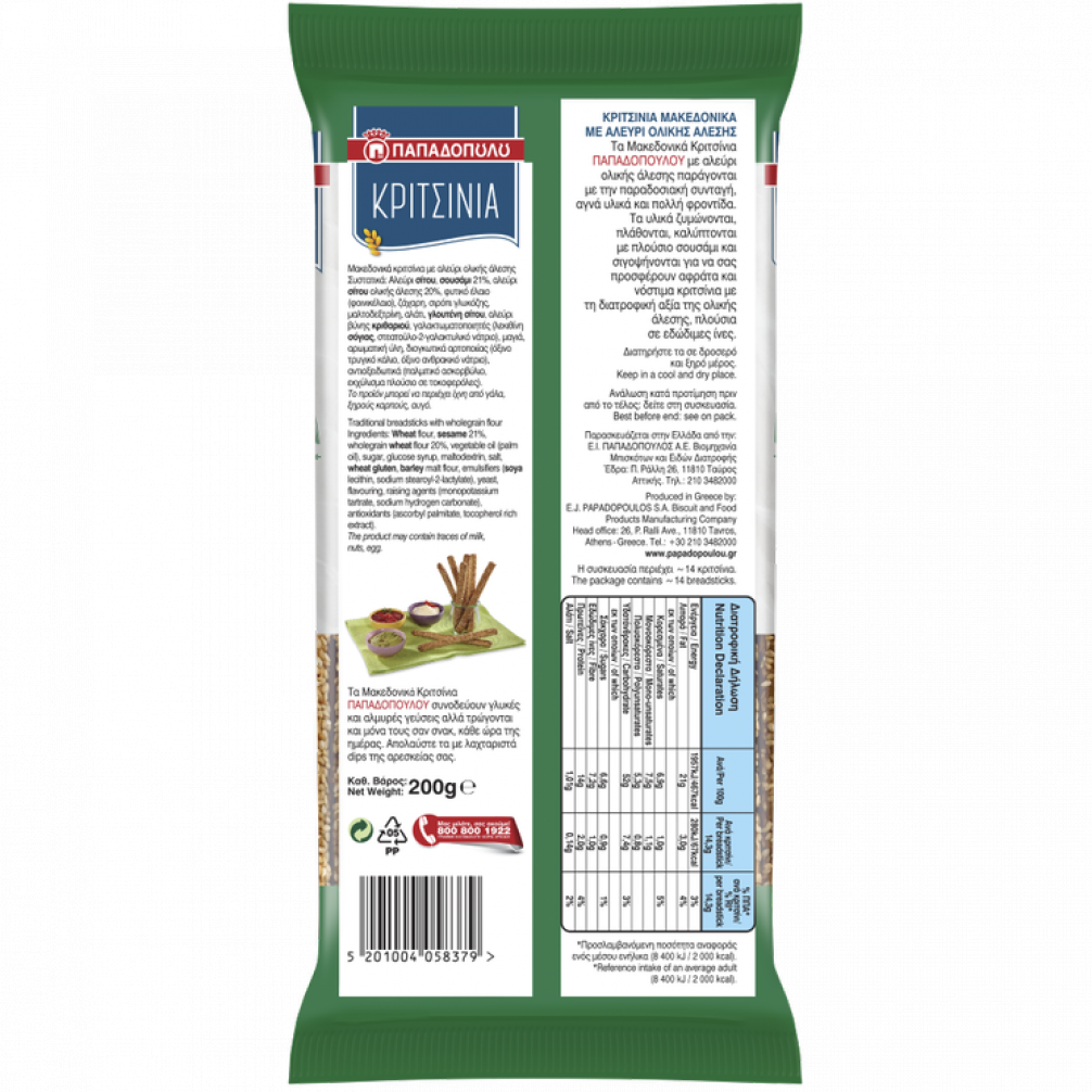 Παραδοσιακές συνταγές, αγνά υλικά που ζυμώνονται και παίρνουν σχήμα, σιγοψήνονται και συσκευάζονται αμέσως, για να σας προσφέρουν πάντα τραγανά και νόστιμα κριτσίνια.