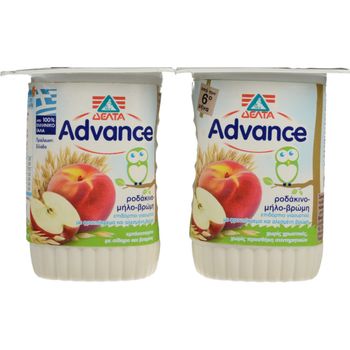 Συστατικά: Φρέσκο γάλα αγελάδος - αποβουτυρωμένο συμπυκνωμένο γάλα αγελάδος - ανθόγαλα, πρωτεΐνη γάλακτος 78,8%, φρουκτόζη, ροδάκινο - μήλο 6%, εκχύλισμα σταφυλιού, άμυλο, βρώμη: 0,6%, γακλακτικός σίδηρος, μίγμα βιταμινών (Β6, νιασίνη, φολικό οξύ, C), φυσικά αρώματα ροδάκινου και μήλου, καλλιέργεια γιαούρτης. Λιπαρά 3,0%, ολικά στερεά 21,6%.