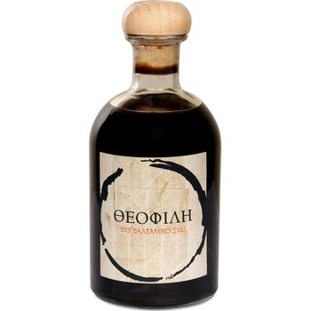 To Ξύδι Βιο-βαλσάμικο Θεοφίλη είναι ποιοτικό βιολογικό βαλσάμικο ξύδι τουλάχιστον 3 ετών παλαίωσης.