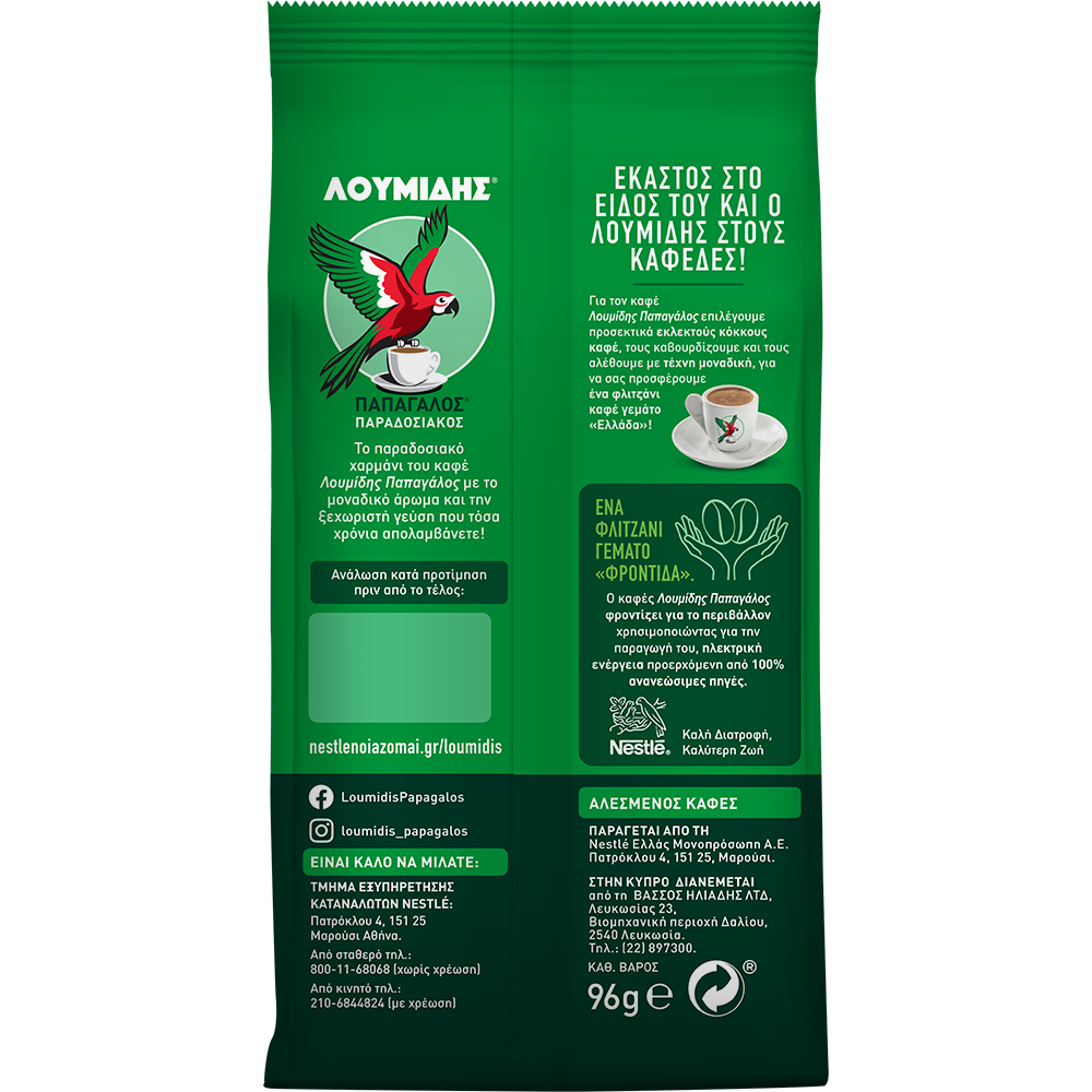 Ο αγαπημένος ελληνικός καφές. Με εκλεκτό, άριστης ποιότητας χαρμάνι, με άρωμα πλούσιο, απολαυστικό με όνομα ξακουστό από το 1919.