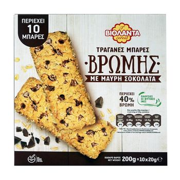 Μπάρες βρώμης με κομματάκια μαύρης σοκολάτας.