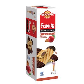 Μακρόστενο μπισκότο με κανέλα και γέμιση μήλο. Υφή αφράτη και χρώμα χρυσοκαφέ.