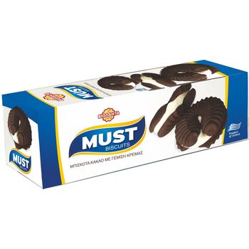 Απολαυστικά στρογγυλά μπισκότα κακάο και λαχταριστή αφράτη γέμιση κρέμας.