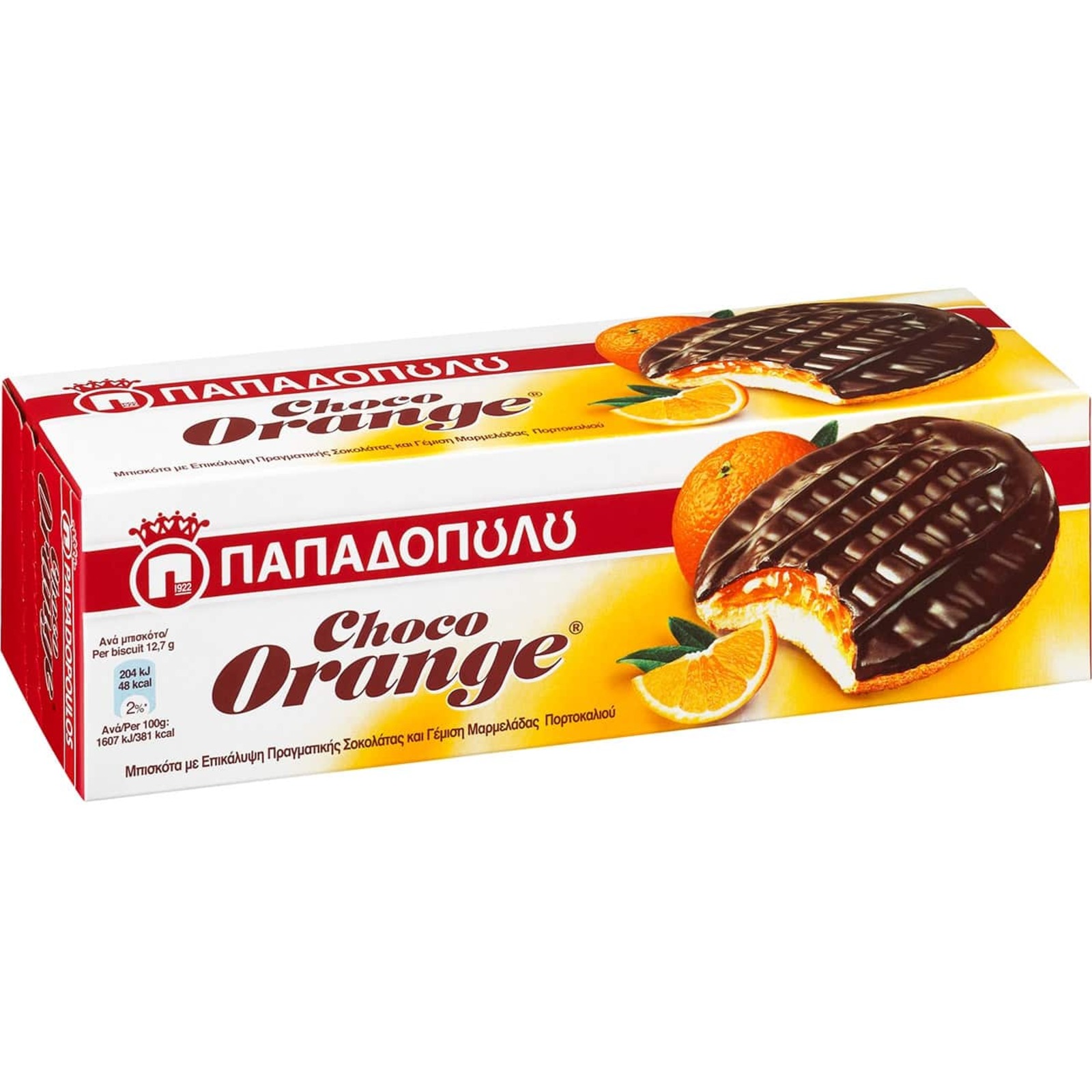 Μαλακά μπισκότα με γέμιση μαρμελάδα πορτοκάλι και επικάλυψη πραγματικής σοκολάτας.