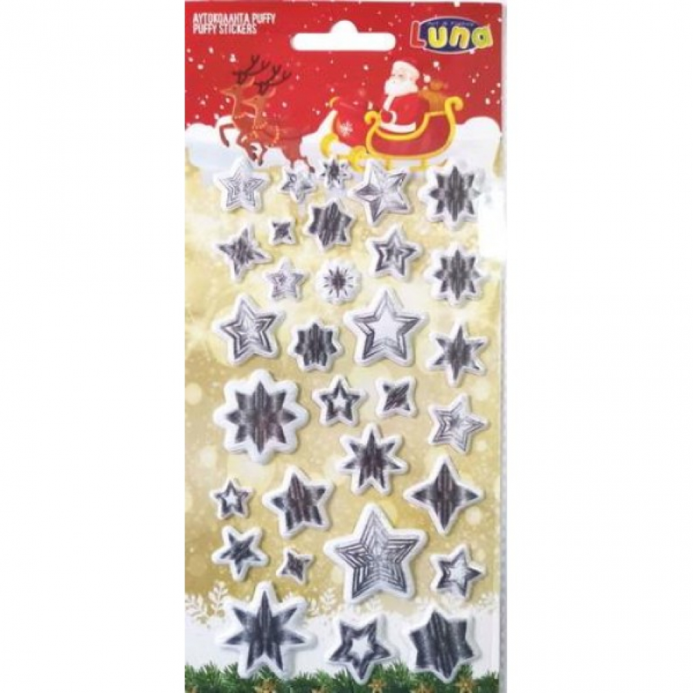 Χριστουγεννιάτικα Διακοσμητικά Αυτοκόλλητα Puffy Glitter Luna ιδανικά για να διακοσμήσουν και να δημιουργήσουν την πιο γιορτινή χριστουγεννιάτικη ατμόσφαιρα που θα εντυπωσιάσουν! Διαστάσεις σελίδας 10x22 εκ