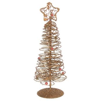 Δεντράκι Χριστουγεννιάτικο Μεταλλικό Χρυσό με Χάντρες 20εκ (000660025)